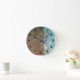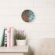 Turquoise Tan Vintage Wallpaper Abstract Round Clock