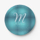 Turquoise teal agate aqua monogram add letter text paper plate