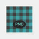 Turquoise Teal Blue Black Buffalo Plaid Monogram Napkin