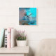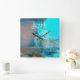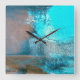 Turquoise Textured Paint and Rust Abstract Square Wall Clock