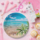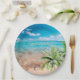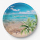 Turquoise Tides Tropical Palm Tree Beach Wedding Paper Plate