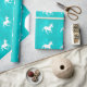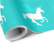 Wrap gifts for the bride and groom with a roll of Turquoise Unicorn Wedding Wrapping Paper. Wrapping paper design features a starry background with a unicorn adorned with stars. Additional wedding stationery and gifts available with this design as well.