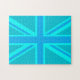 Turquoise Union Jack British Flag Design Jigsaw Puzzle