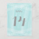 Classic and elegant Watercolor Deco Wedding Table Number Postcard with a modern striped criss-cross hatched art deco design in white and a subtle aqua watercolor look background. This simple and chic table card can be easily customised with your wedding details. For more personalisation options, click Customise.