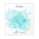 An artistic design that features an abstract watercolor paint splatter in pretty turquoise blue on white with the word Notes at the top and a place for your name at the bottom. #artsy