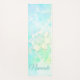 On this dreamy yoga mat is an abstract, soft pastel watercolor of greens and blues makes for an inspiring backdrop with a matching pastel shaded lotus flower in the center. Boho chic vibes. Can be personalized on the bottom of the mat or can be kept as is with the word namaste.