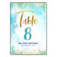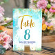 Turquoise Watercolor Quinceañera Gold Script Girly Table Number