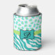 Turquoise White Green Zebra Leopard Skin Monogram Can Cooler