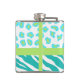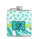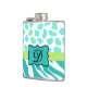 Turquoise White Green Zebra Leopard Skin Monogram Hip Flask