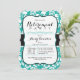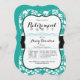 Elegant, formal Turquoise, teal and white tropical hibiscus flower, floral pattern retirement party invitation with black and grey fonts. Perfect year round classy invite for spring and summer beach, seaside, Hawaiian ocean theme retirement showers. Bracket shape invite for stylish vintage look. Professional look; great for man or woman corporate business coworker.