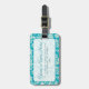 Elegant floral damask in white and tile turquoise-blue. Fully customisable luggage tags.