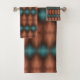 Stylish and decorative designer bath towel set with chocolate, copper browns and turquoise.