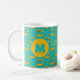 Turquoise & Yellow XOXO Kissing Lips Personalized Coffee Mug