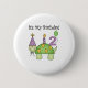 A cute green smiling turtle wearing a party hat carries a lit birthday candle on his back and text reads "It's My Birthday". A helium balloon carries the number 2!