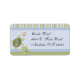 This bright coloured address label has turtles and a goldfish swimming around bubbles in blue. The top has stripes in blue, green and yellow.