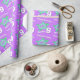 Birthday wrapping paper in bright purple and green with a swimming whimsical sea turtle design. Personalise this turtle art birthday paper with your child's name and age. Currently reads Happy Birthday Nadia 9 today. Ideal for young turtle or sea creatures or wildlife fans. Design and cute heart shell turtle painted in watercolor by Sarah Trett.