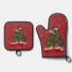 Turtle doves in Christmas background red Oven Mitt & Pot Holder Set