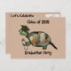 Graphic illustration of a colourful turtle receiving a diploma at graduation. Customise the text with your message and choose your favourite background colour. Fun idea for your special event!