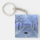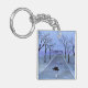 A watercolor painting of a silhouetted turtle crossing a road adorns this customisable keychain!