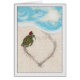 A sea turtle expresses his love by coming to shore, offering a single red rose, and drawing a heart in the sand, as the sun reflects overhead. A great Valentine's Day gift for the turtle-lover you love!