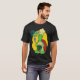 I give wanted to give this a 4 instead of a 5 because these Basic DARK T0shirts run unexpectedly SLIM or Narrow. Which is great if you do not have a potbelly, but I have a paunch. It isn't the shirt's fault that I've got a beer belly. The design and shirt itself is a quality cotton shirt. The color is more of a deep purple, but still a very pretty color. The Basic DARK T-shirts run a bit SLIMMER than the Basic Ts. The neck is a fraction narrower (or seems to be narrower) also. I'm a paunchy middle-aged woman and my neck is 12 inches (31cm) thick and the neckline fell about the same as in the photo of the man, and I had the desire to tug it a bit. So if you're a thick necked man or like loose shirts, be aware these are slimmer shirts. Once I get rid of my lockdown paunch it'll look great. The shirt washed well in cold water with no apparent bleeding. We don't have a dryer, so it hung dry. Did not shrink. Love the colors and the design. The design looks smaller on my shirt than it does on the model on-line. But still, it looks good on the shirt. The printing looks as it does on the model, just the size seems fractionally smaller. Washed garment in cold water, hung dry and design appeared unaffected.