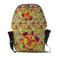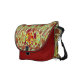 Sea turtle within sea turtle in red / orange / yellow colours. Sea turtle with a design of a smaller turtle, and multiple colourful fish against patterned background. Sea turtle art. This messenger bag has the design on the outside.