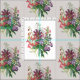 Old-fashioned botanical illustration of turtlehead and beardtongue flowers in purple, pink, red and white