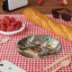 Get party plates with a cool illustration of turtles eating cake and wearing birthday hats, you can find matching products in the store such as invitations and small posters.