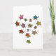 Cute card is illustrated with colourful turtles arranged to form the shape of a heart
