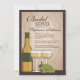 An elegant and aged look on this wine-themed Bridal Shower invitation is perfect when the bride is a wine lover or party is to be held at a winery or vineyard. Two glasses of white wine with grapes and wine bottle on an aged looking subtly patterned background gives this design an old world tuscan feel.