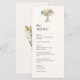 Elevate your reception tables with this elegant Tuscan-inspired wedding menu featuring a classic garden urn filled with delicate florals. Inspired by the timeless charm of the Italian countryside, the design blends old-world sophistication with a soft, romantic aesthetic—perfect for creating a refined and cohesive dining experience.