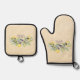 A pretty set of one pot holder and one oven mitt with a Tuscan style spray of lemons and olives on a creamy aged background. Can be purchased separately or as a set. Choose a black silicone backing or a heat resistant quilted silver backing.