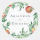 Summer orchard bountiful fruit, a rustic country farmhouse feel with overhanging branches laden with fruit. This is a fun summer watercolour design, with peaches, oranges, blush colours complimented by greenery and delicate flower blossom.