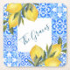 Tuscan Tile Watercolor with Lemon Square Paper Coaster