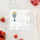 Sunflower floral and stemmed glass wedding cocktail napkin. Stunning. Cobalt blue text. Coined. Elegant font.