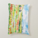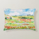 The cushion is small to medium sized. It can be washed. It is well constructed. The material used is pleasant and feels decent quality. It has a very slight plush feel which is good. It is well labelled and its care clearly stated. Theres nothing not to like about it. All in all a good item. The deduction of one star overall is due to long delays in delivery to the UK. It's not clear if this was due to Zazzle or somewhere else in the chain as I did not receive status updates of dispatch or progress. I cannot comment anymore on that other than to say that was our experience but it may not be the same for you. The printing was surprisingly close to what we were expecting. Its an art piece and on material so its hard to assess the precision of printing but it seems close to the original. The soft lines are reproductions of the original. The colour is a fair reflection of the painting. This was printed in the US and it looks like US quality. No issues.