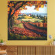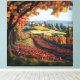 This stunning landscape captures rolling vineyard hills in rich autumn colors, leading toward a charming hilltop village beneath a glowing sky. Inspired by the iconic scenery of Tuscany, this artwork evokes warmth, travel, and the peaceful rhythm of the Italian countryside.