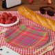 Tutti Frutti PLAID-PAPER PARTY PLATES-An allover background plaid pattern. This design coordinates with other Tutti Frutti Patterns/collection in my store gallery. A full collection of mix and match tutti frutti patterns created with bold, bright colours. The colours include: neon, purple; red, pink; orange and yellow. Young girls will love these crazy colourful designs. Mix and match from the different patterns for a complete coordinated theme. Coordinating solids, polka dots and chevrons are available as well. Choose any style or quantity of Zazzle paper party plates.