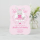 FRONT: Sketched design of a grey bunny wearing a tutu and tiara, holding onto her doll. Textured background. Personalise with your own text details. BACK: Pink sketched floral pattern. You could add your own photo to the back, if you'd like. If you have any questions, feel free to send me a message. NOTE: This listing is available as a BRACKET-SHAPED invitation. A traditional 5x7 shape is available in my "Tutu Cute Bunny" Collection.