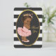 Personalised custom ethnic princess ballerina baby shower flat thank you cards for girls' showers. A beautiful, modern card with contemporary black and white stripes background and elegant black and faux gold foil oval shape with a cute adorable African American Princess baby ballerina in a pink tutu and ballet shoes. Fancy gold cursive font. Classy, chic, feminine, girly, ornate, double sided thank yous for baby showers. All text is fully customisable / personalizable to suit your needs - lots of fonts & colours to choose from. These sophisticated, unique and original personalised, custom invitations are printed on both sides / have double sided printing. If you need any assistance customising your product please contact me through my store and I will be happy to help. PLEASE NOTE: All elements are flat printed graphics - not real gold foil.