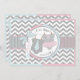 A gender reveal party invitation featuring an adorable polka dot jumper with blue tie and pink tutu and a grey and white chevron print with 3D-look bows and trims.