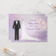 This modern invitation features a groom's black tuxedo and white bride's wedding gown on a light purple gradient background with cherry blossom branch. You can use this invite for wedding announcements, engagement party invitations, save the date, rehearsal dinner or wedding luncheon invitations.