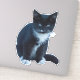Tuxedo black and white kitten sitting and watching photography on any Stickers. Cute animals. Cute pet.