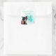 Painting of the number four in green with pink swirl ribbons, with a photo of our tuxedo cat wearing a pink and white striped dressed, with Happy Birthday Jeremy, is printed on custom stickers. The text can be easily changed on the template form.