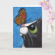 Whimsical cat art greeting card. Blank inside. Black and white cat with a viceroy butterfly on the tip of his nose. Created from an original painting copyright 2009 Lisa Marie Robinson