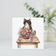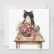 Tuxedo cat arranging flower Mother;s Day Holiday Card