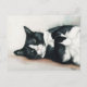 This postcard features a reproduction of my original coloured pencil drawing of a tuxedo cat.