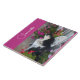 Tuxedo Cat Cats and Flowers Girls Name Dark Pink Tile