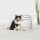 "Tuxedo Cat Christmas Humour Card" by Fuzzyball. A tuxedo cat expresses her difficulty in finding the perfect Christmas gift. Luckily, she coughs up something just in time for the holidays!