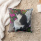 Tuxedo Cat Cute with Pretty Flowers Black Cats Cushion